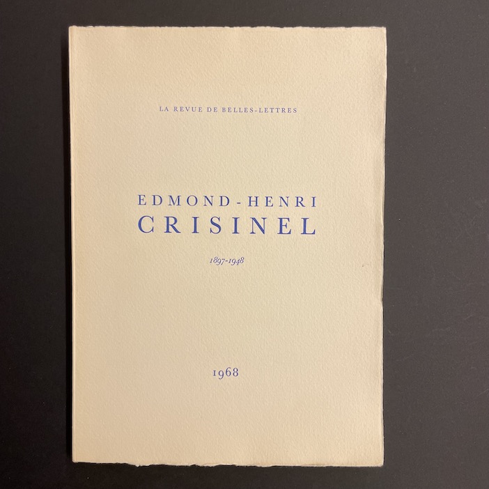 [CRISINEL] – COLLECTIF Edmond-Henri Crisinel 1897-1948.. Lausanne, Revue de Belles-Lettres, 1968.