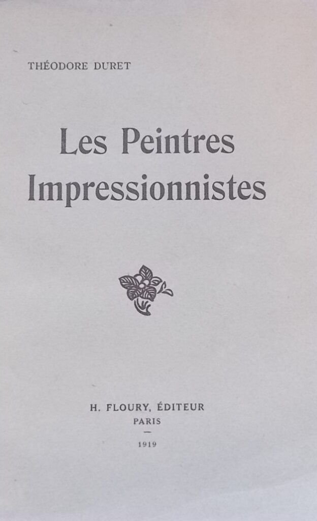 DURET (Théodore) Histoire des peintres impressionnistes. Pissaro, Claude Monet, Sisley, Renoir, Berthe Morisot, Cézanne, Guillaumin. Paris, Floury, 1919.