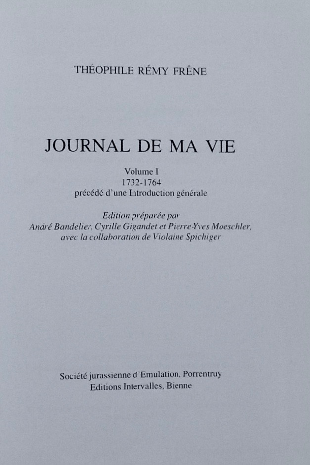 FRENE (Théophile Rémy) Journal de ma vie. Porrentruy, SJE et Bienne, Intervalles, 1993-1994.