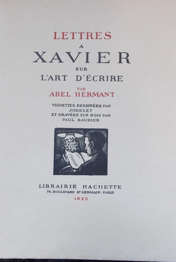 HERMANT (Abel) Lettres à Xavier sur l’art d’écrire. Paris, Librairie Hachette, 1925.