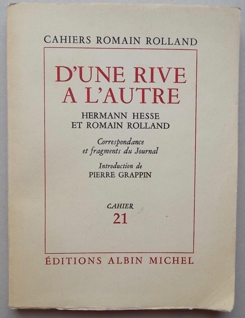 HESSE (Hermann) & ROLLAND (Romain) D’une rive à l’autre. Correspondance et fragments du Journal. Paris, Albin Michel (Cahiers Romain Rolland 21), 1972.