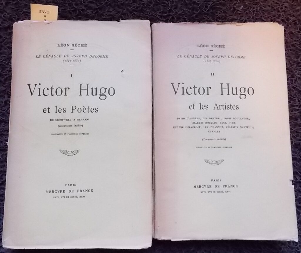 [HUGO] – SECHE (Léon) Le cénacle de Joseph Delorme. I: Victor Hugo et les poètes. II: Victor Hugo et les artistes. Paris, Mercure de France, 1912.