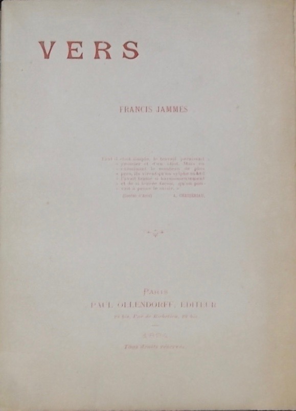 JAMMES (Francis) Elégies et autres vers. Lausanne, Mermod (coll. Le Bouquet), 1946.