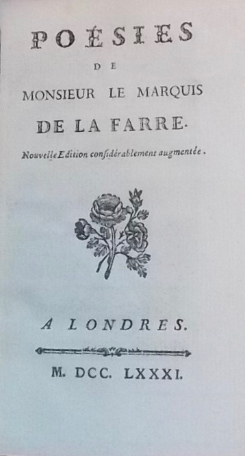 LA FARRE (Charles-Auguste, marquis de) Poésies de Monsieur le marquis de La Farre. Londres, [Cazin], 1781.