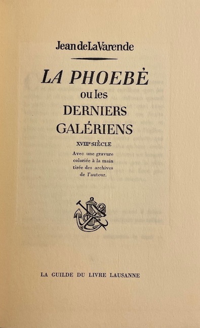 LA VARENDE (Jean de) La Phoebé, ou les derniers galériens. Lausanne, Guilde du Livre, 1939.