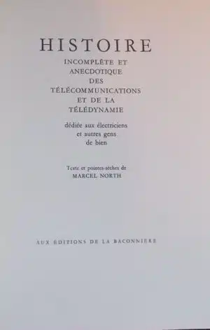 NORTH (Marcel) Histoire incomplète et anecdotique des télécommunications et de la télédynamie, dédiée aux électriciens et autres gens de bien. Neuchâtel, La Baconnière, 1954.