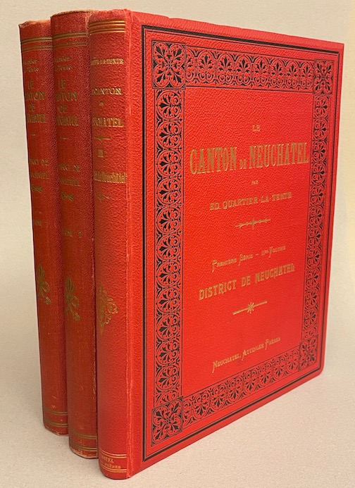 QUARTIER-LA-TENTE (Edouard) Le canton de Neuchâtel. Revue historique et monographique des communes du canton. Première série (1er – 2e – 3e volume): District de Neuchâtel. Neuchâtel, Attinger Frères, 1897-1903.