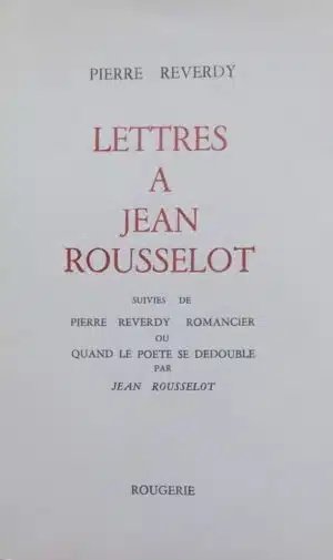 REVERDY (Pierre) Lettres à Jean Rousselot, suivies de Pierre Reverdy romancier, ou quand le poète se dédouble par Jean Rousselot. Sans lieu, Rougerie, 1973.
