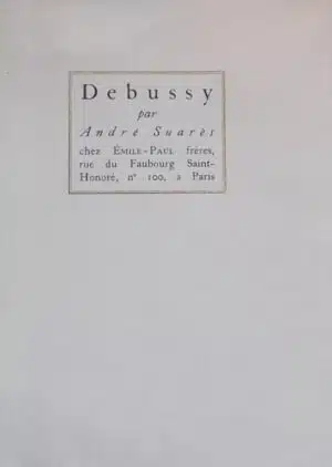 SUARES (André) Debussy. Paris, Emile-Paul frères, 1922.