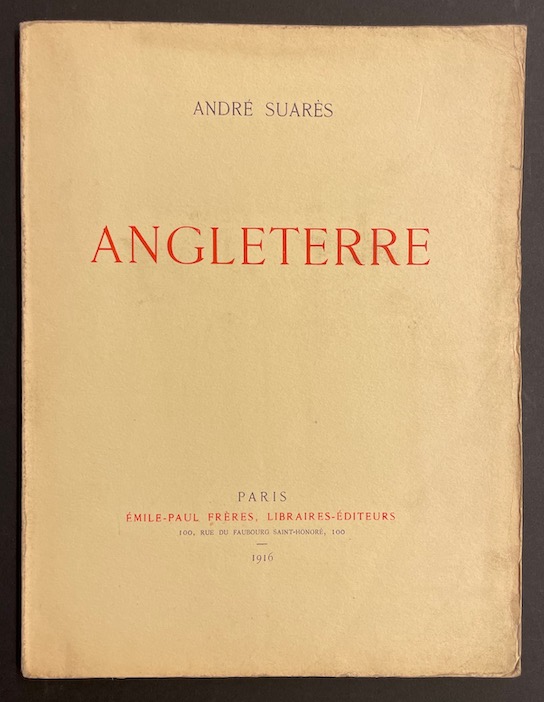 SUARES (André) Angleterre. Paris, Emile-Paul Frères, 1916.