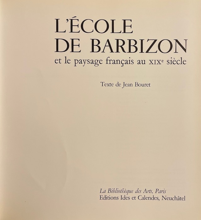 BOURET (Jean) L'école de Barbizon et le paysage français au XIXe siècle. Neuchâtel, Ides et Calendes, 1972.