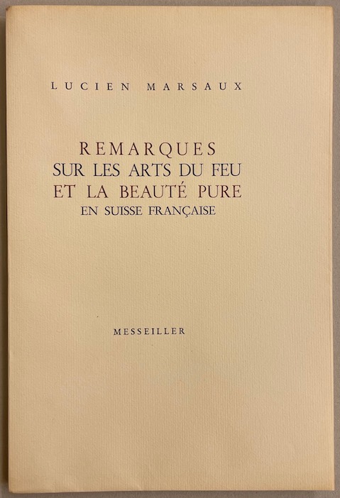 MARSAUX (Lucien) [pseud. d'André Hofer] Remarques sur les arts du feu et la beauté pure en Suisse française. Neuchâtel, Messeiller,1949.