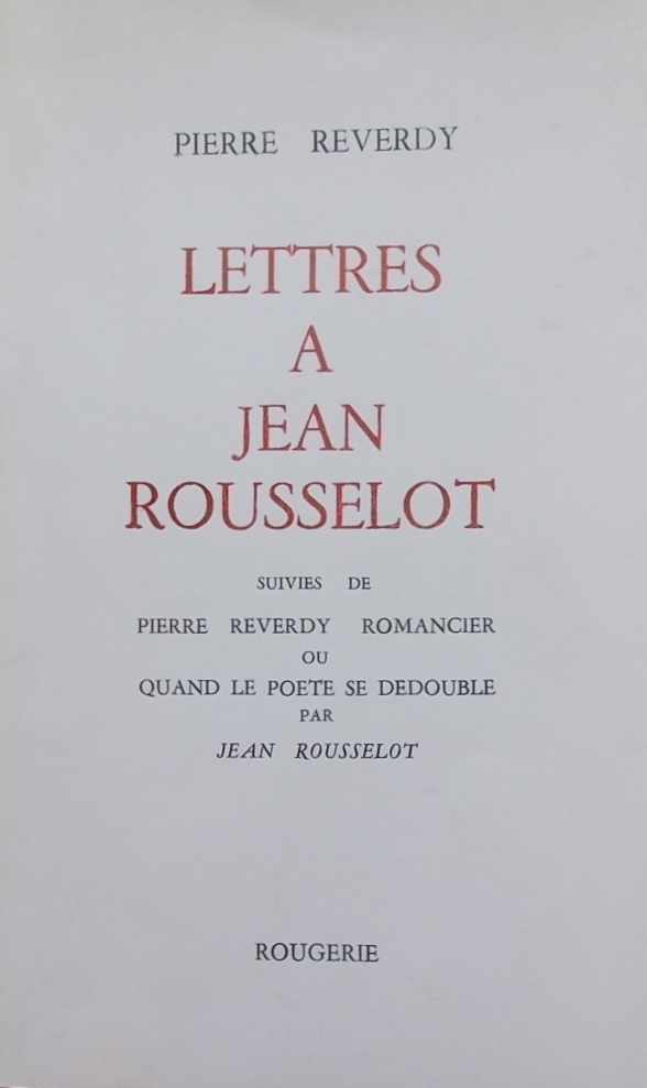 REVERDY (Pierre) Lettres à Jean Rousselot, suivies de Pierre Reverdy romancier, ou quand le poète se dédouble par Jean Rousselot. Sans lieu, Rougerie, 1973.