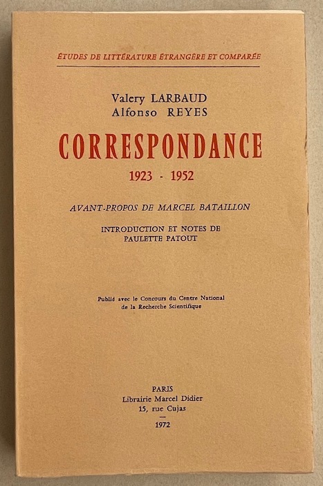 LARBAUD (Valery) & REYES (Alfonso) Correspondance 1923-1952. Paris, Librairie Marcel Didier, 1972.