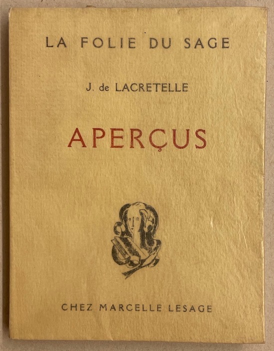 LACRETELLE (Jean de) Aperçus. Paris, Marcelle Lesage (coll. La Folie du sage), 1927.