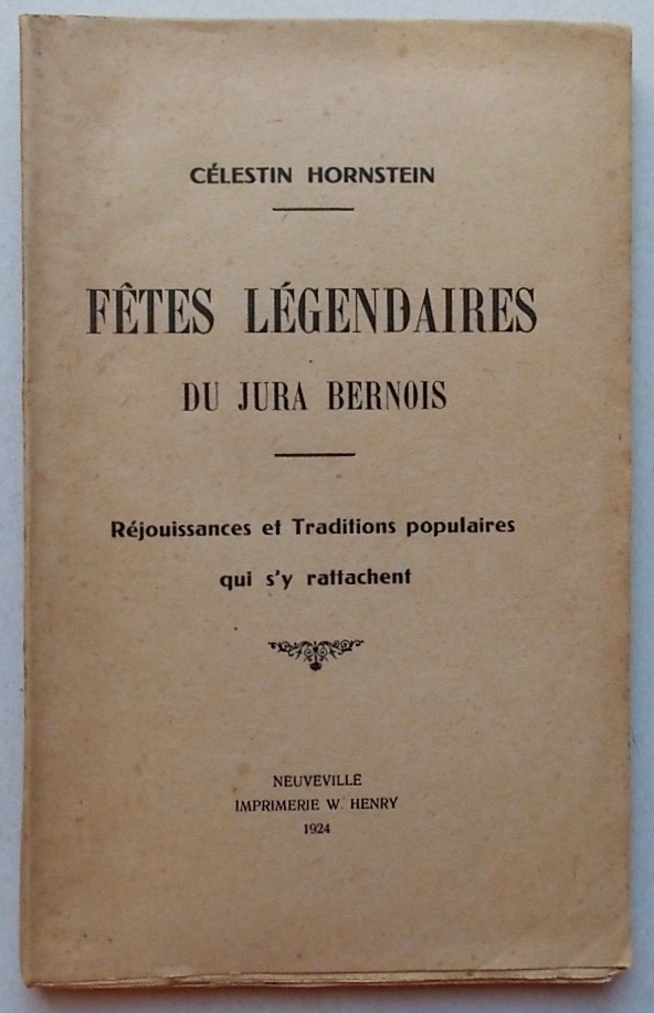HORNSTEIN (Célestin) Fêtes légendaires du Jura bernois. La Neuveville, Imprimerie W. Henry, 1924.