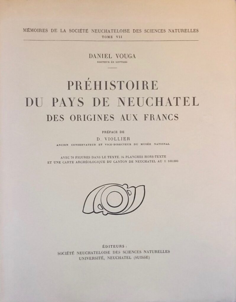 VOUGA (Daniel) Préhistoire du pays de Neuchâtel des origines aux Francs. Neuchâtel, Imprimerie P. Attinger, 1943.