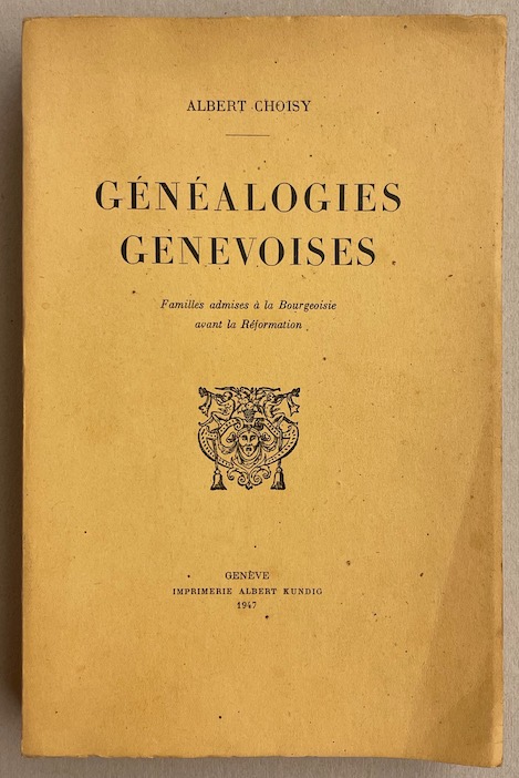 CHOISY (Albert) Généalogies genevoises. Familles admises à la Bourgeoisie avant la Réformation. Genèmve, Imprimerie Albert Kundig, 1947.