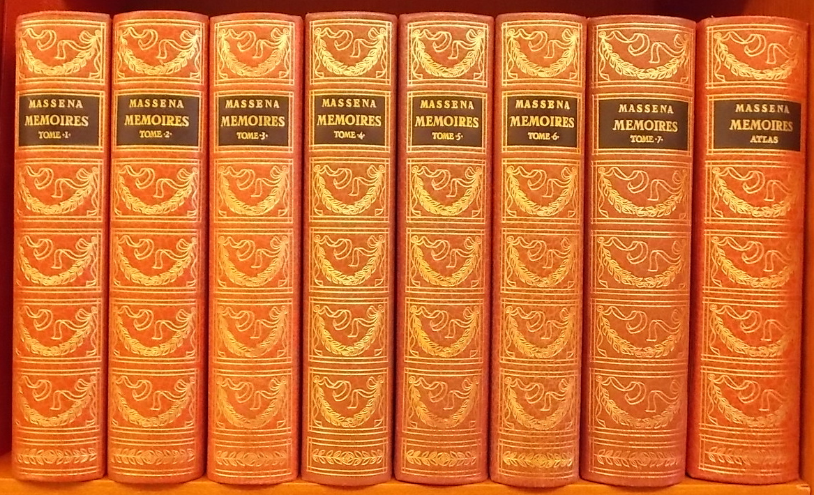 MASSENA (André, duc de Rivoli) Mémoires d'André Masséna, duc de Rivoli, prince d'Essling, maréchal d'Empire, rédigés d'après les documents qu'il a laissés et sur ceux du dépôt de la Guerre et du dépôt des fortifications, recueillis par le général Koch. Paris, Jean de Bonnot, 1966-67.