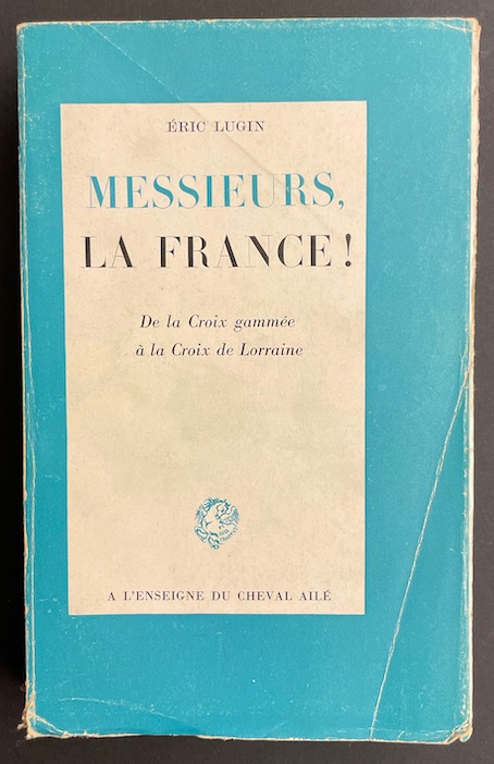LUGIN (Eric) Messieurs, la France! De la Croix gammée à la Croix de Lorraine. Genève, A l'Enseigne du Cheval Ailé, 1944.