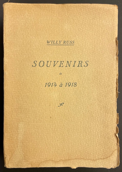 RUSS (Willy) Souvenirs de 1914 à 1918. [Neuchâtel, chez l'auteur], 1924.