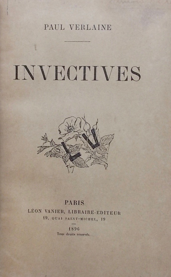 VERLAINE (Paul) Invectives. Paris. Léon Vanier, 1896.