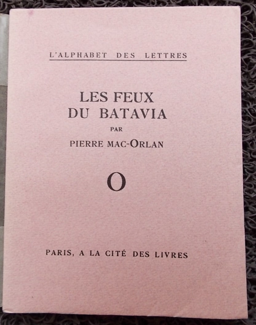 MAC ORLAN (Pierre) Les feux du Batavia. Paris, A la Cité des Livres (coll. L'Alphabet des Lettres), 1926.