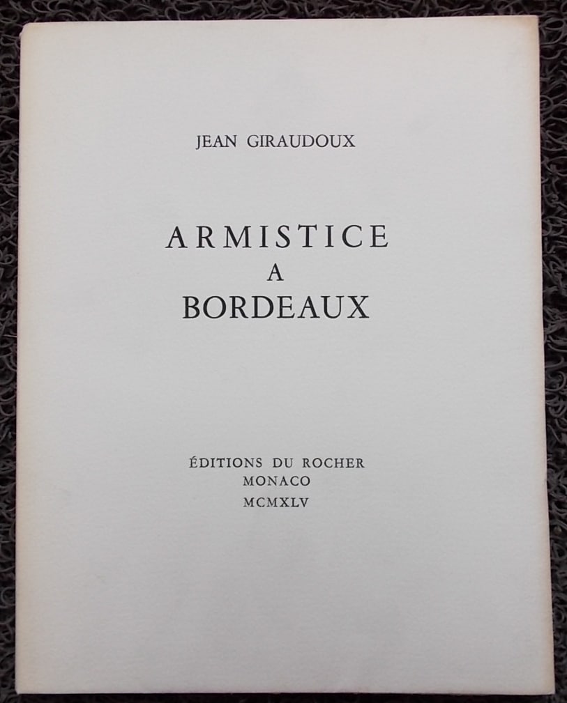 GIRAUDOUX (Jean) Armistice à Bordeaux. Monaco, Editions du Rocher, 1945.