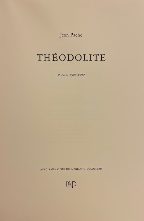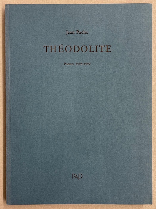 PACHE (Jean) Théodolite. Poèmes 1988-1992. Pully, Pierre-Alain Pingoud, 1993.