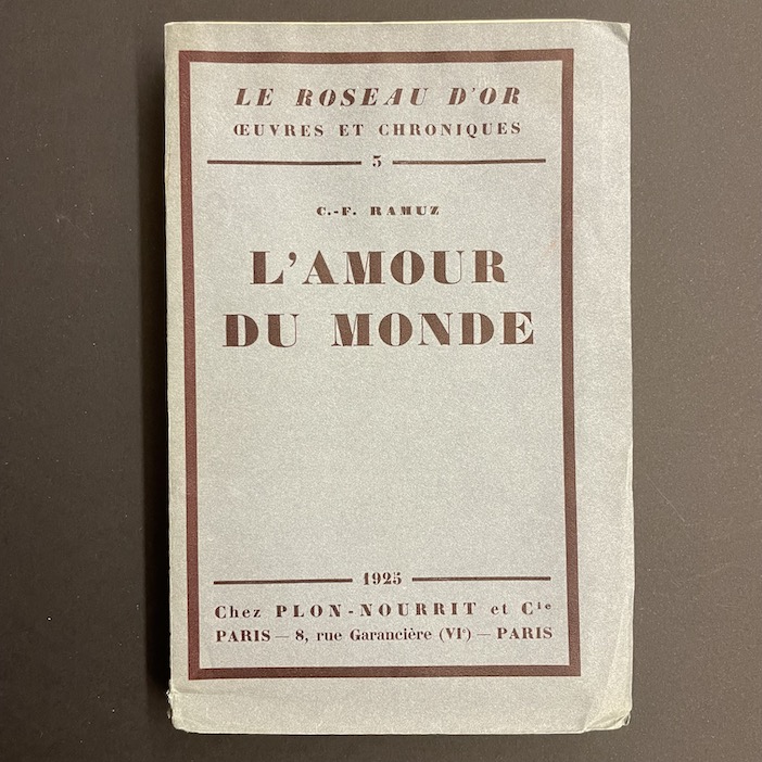 RAMUZ (C.-F.) L'amour du monde. Paris, Plon-Nourrit et Cie (coll. Le roseau d'or), 1925.