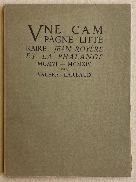 LARBAUD (Valery) Une campagne littéraire. Jean Royère et la Phalange MCMVI - MCMXIV Paris, Camille Bloch, 1927.