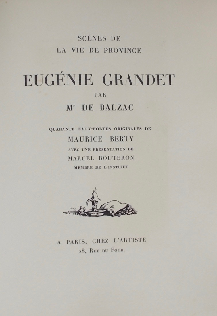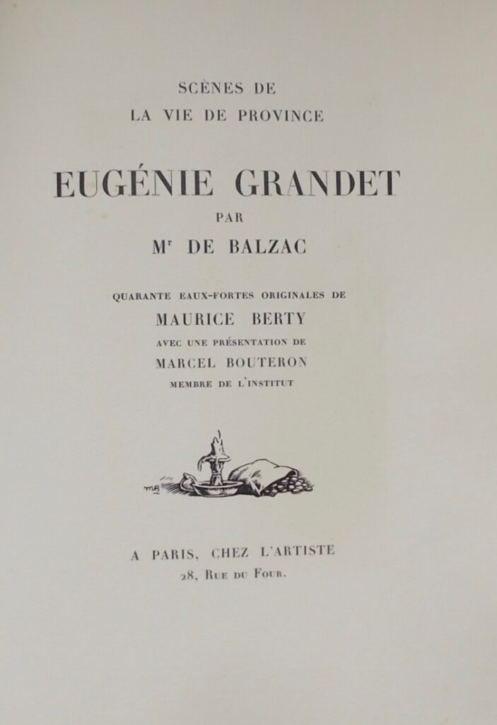 [BERTY (Maurice)] - BALZAC (Honoré de) Eugénie Grandet. Scènes de la vie de province. A Paris, chez l'artiste, 1941.