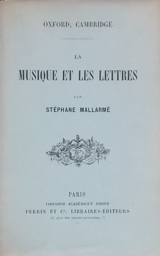 MALLARME (Stéphane) Oxford, Cambridge. La musique et les lettres. Paris, Librairie académique Didier - Perrin et Cie, 1895.