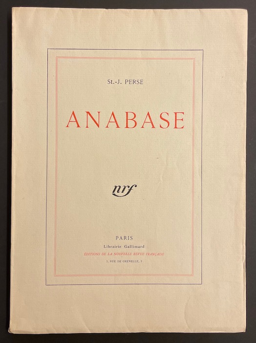 SAINT-JOHN PERSE (Aléxis Saint-Léger Léger, dit) Anabase. Paris, Editions de La Nouvelle Revue Française, 1925.