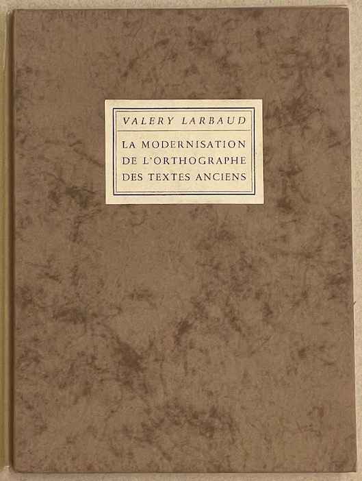 LARBAUD (Valery) La modernisation de l'orthographe des textes anciens. [Maastricht], A.A.M. Stols, 1938 (i.e. 1944).