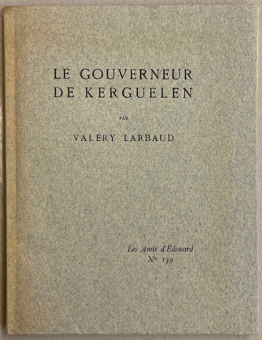 LARBAUD (Valery) Le gouverneur de Kerguelen. Paris, Edouard Champion (coll. Les Amis d'Edouard), 1933.