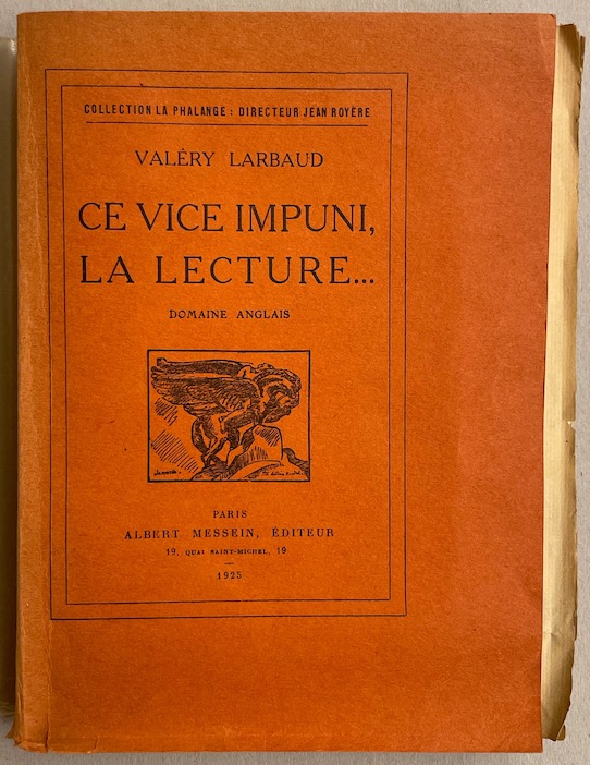 LARBAUD (Valery) Ce vice impuni, la lecture... Domaine anglais. Paris, Albert Messein, 1925.