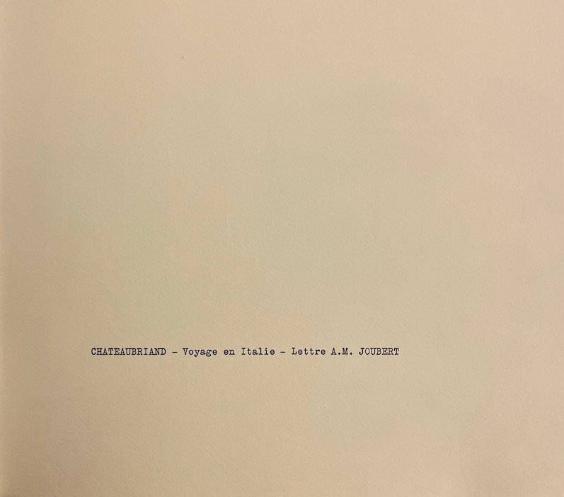 CHATEAUBRIAND (François-René de) Voyage en Italie - Lettre à M. Joubert. Paris, Société des Francs Bibliophiles, 1977.