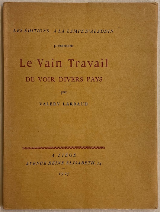 LARBAUD (Valery) Le vain travail de voir divers pays. Liège, A la Lampe d'Aladdin, 1927.
