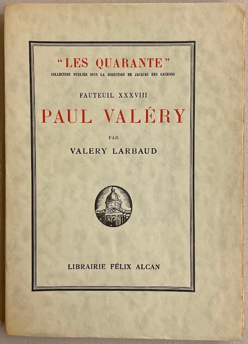 LARBAUD (Valery) Fauteuil XXXVIII. Paul Valéry. Suivi de Pages inédites et de L'histoire du XXXVIIIe fauteuil. Paris, Librairie Félix Alcan (coll. Les Quarante), 1931.