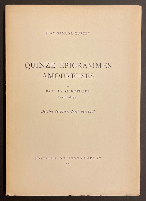 CURTET (Jean-Samuel) trad. Quinze épigrammes amoureuses de Paul le Silentiaire. [Lausanne], Editions du Revenandray, 1963.