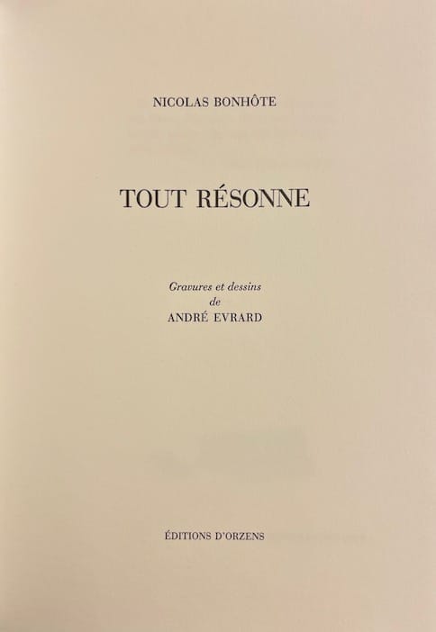 BONHOTE (Nicolas) - EVRARD (André) Tout résonne. Lutry, Editions d'Orzens, 2002.