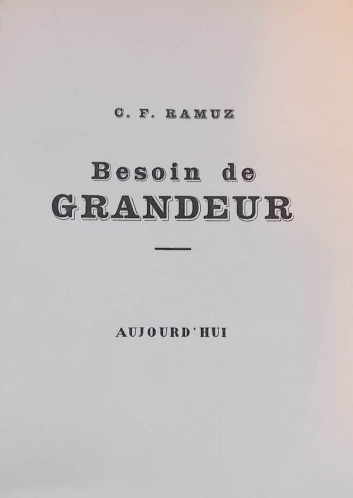 RAMUZ (C. F.) Besoin de grandeur. Lausanne, Mermod - Aujourd'hui, [1937].