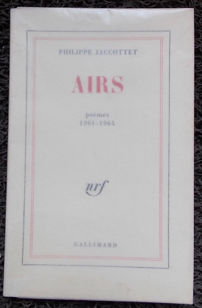 JACCOTTET (Philippe) Airs. Poèmes 1961-1964. Paris, Gallimard (coll. Blanche), 1967.