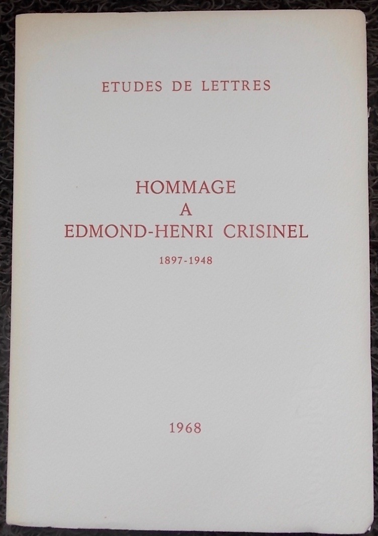 [CRISINEL] - ROUD (Gustave) et al. Hommage à Edmond-Henri Crisinel 1897-1948. Lausanne, Revue Etudes de Lettres, 1968.