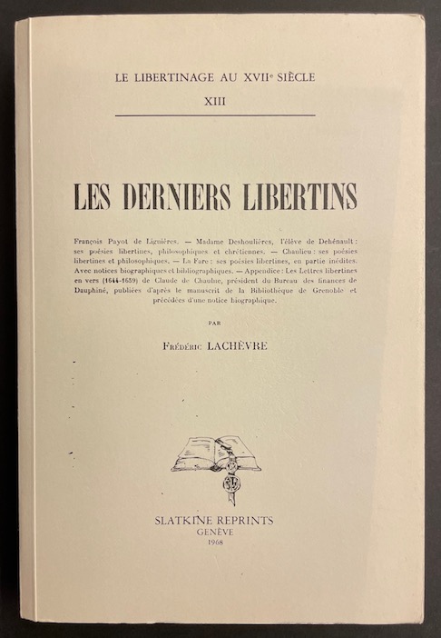 LACHEVRE (Frédéric) Les derniers libertins. Genève, Slatkine Reprints (coll. Le libertinage au XVIIe siècle; XIII), 1968.