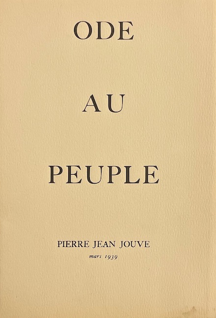JOUVE (Pierre Jean) Ode au peuple. Paris, GLM, 1939.