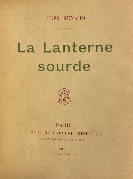 RENARD (Jules) La lanterne sourde. Paris, Paul Ollendorff, 1893.
