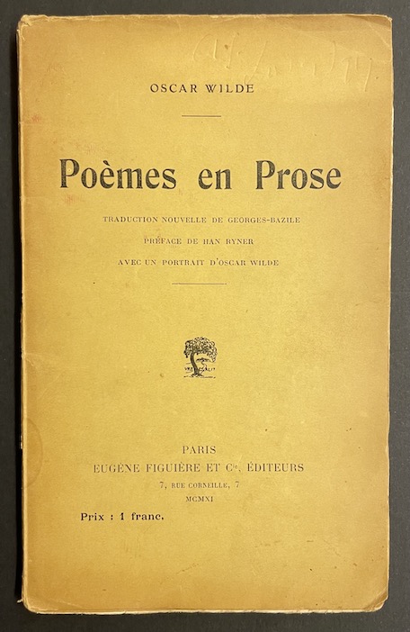 WILDE (Oscar) Poèmes en prose. Paris, Eugène Figuière et Cie, 1911.