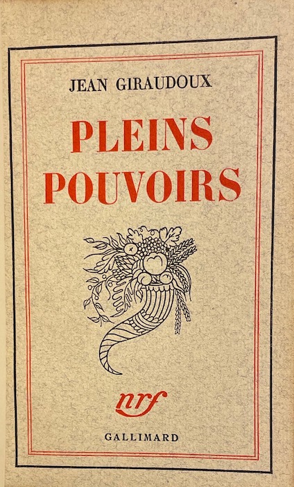 GIRAUDOUX (Jean) Pleins pouvoirs. Paris, Gallimard, 1939.